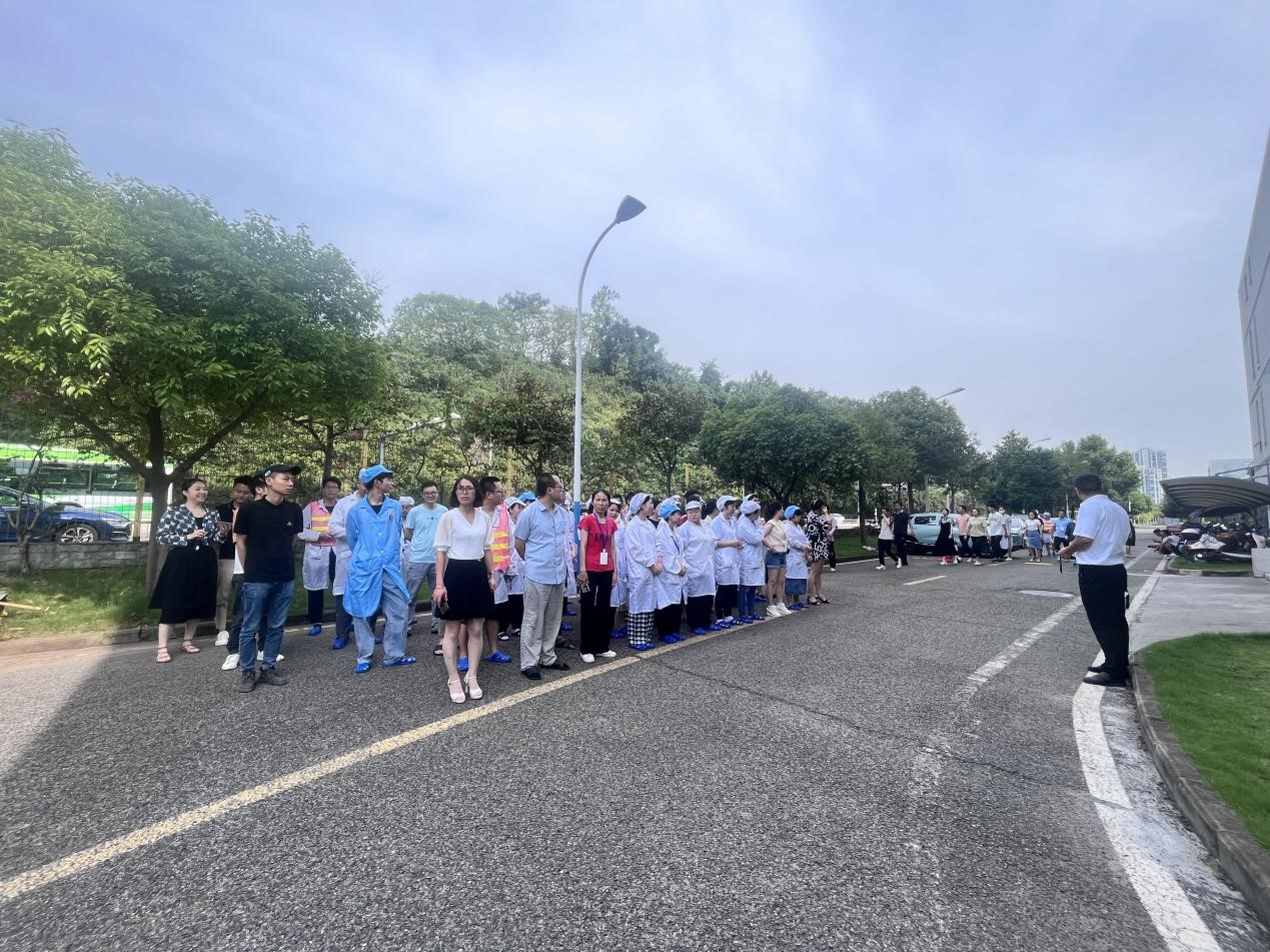 2023年8月11日上午9: 30,正式演練開始。照明電路關閉,警報拉響,辦公區(qū)和車間共同進入了應急狀態(tài)。在總指揮運營總監(jiān)石慶軍的帶領下,在安全員們的指揮下,大家有條不紊地進行疏散,迅速經由最近的安全通道下樓。